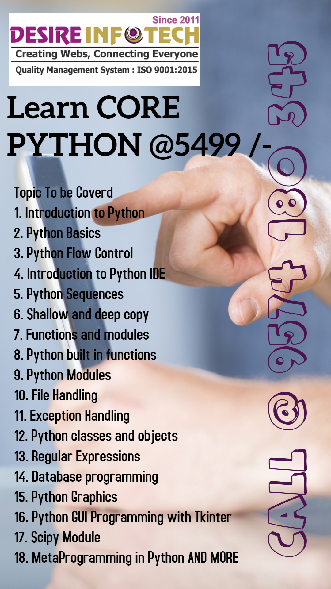 Desire Infotech is very Reputed Python Training institute in Gandhinagar for Final Year Project Training(Internship For Final year Students), Basic & Advanced Python Learning with Examples, Tutorial & Interview Job Assistance!